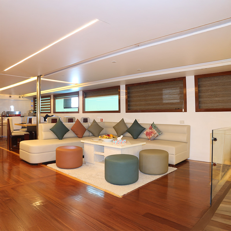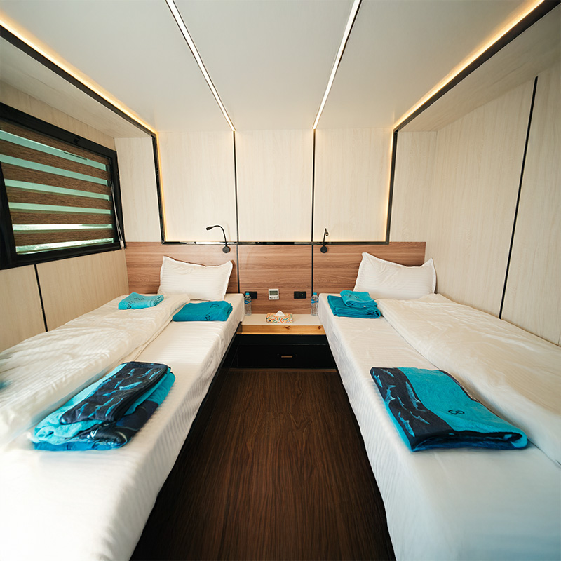 Jedes Detail an Bord wurde sorgfältig geplant, um ruhiges Fahrverhalten, professionelle Tauchabläufe und entspanntes Leben an Bord zu gewährleisten.