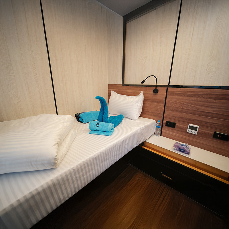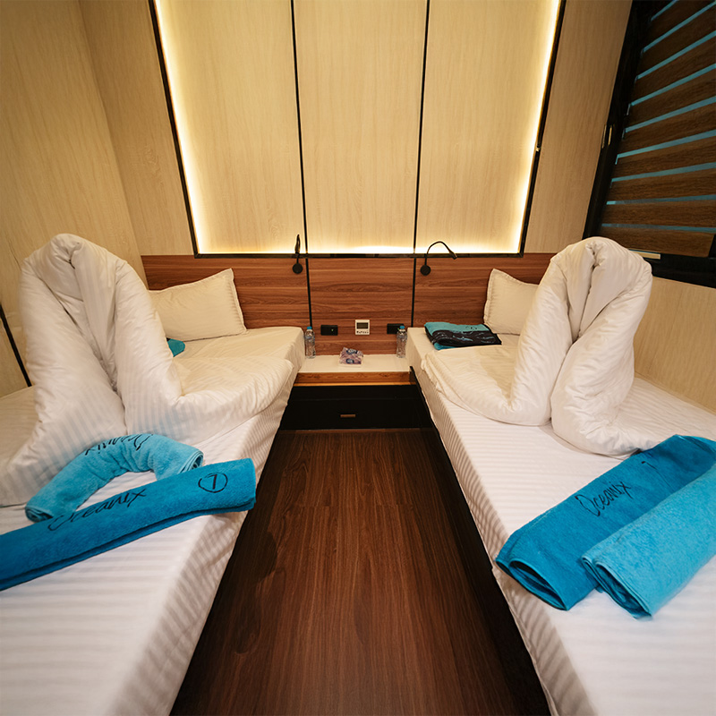 Mit einer Länge von 38 Metern, einer Breite von 8 Metern und einer maximalen Kapazität von 24 Gästen legen wir besonderen Wert auf Komfort, Qualität und Exklusivität.