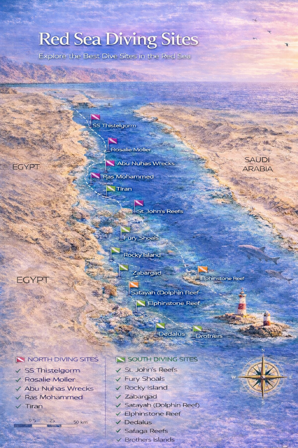 Sie liegen etwa 60 km vor der ägyptischen Küste und bestehen aus Big Brother und Little Brother.