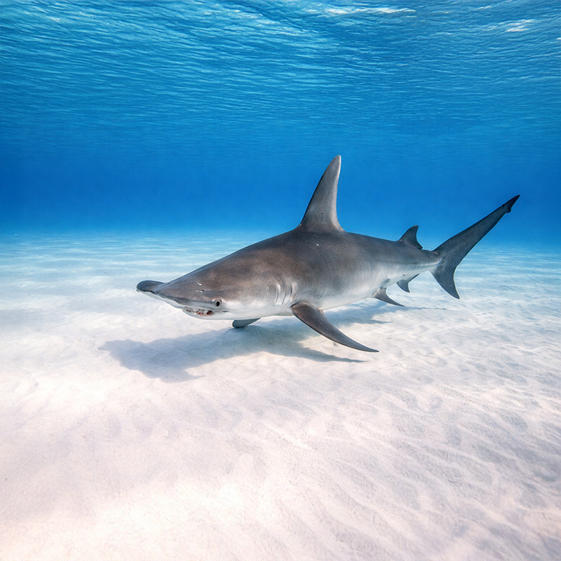 Häufige Haiarten: Hammerhaie, Fuchshaie, Graue Riffhaie, Silberspitzen- und Weißspitzenhaie.
