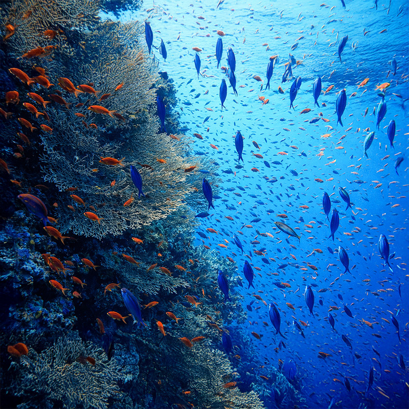 Unberührte Hart- und Weichkorallen, reiches Fischleben sowie Riffhaie (Weißspitzen, Graue Riffhaie) und gelegentlich Ozeanische Weißspitzenhaie.