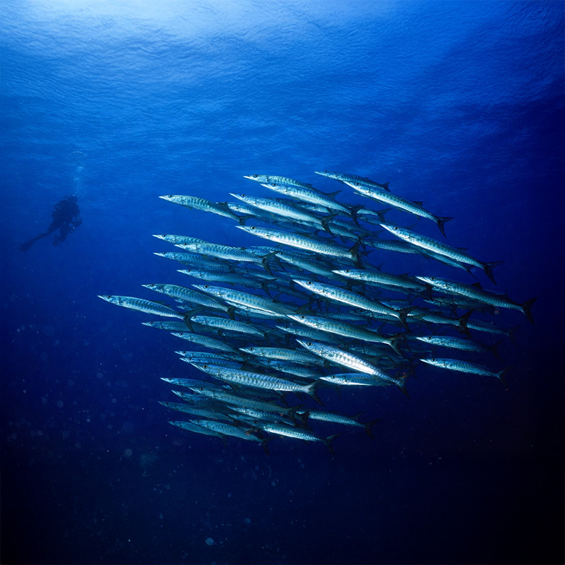 Bekannt für Hammerhaie, Riffhaie und enorme Fischschwärme.
